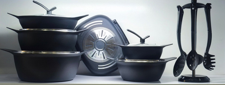 قابلمه چدن دورنیکا 22 پارچه ۴ عدد قابلمه ۳۲،۲۸،۲۴و۲۰ تابه سایز ۲۸ و تابه رژیمی ۳۲ جنس چدن گرانیتی جنس داخلی نچسب دارای نشان استاندارد سرویس۷پارچه کفگیر و ملاقه رنگبندی مشکی0💰
